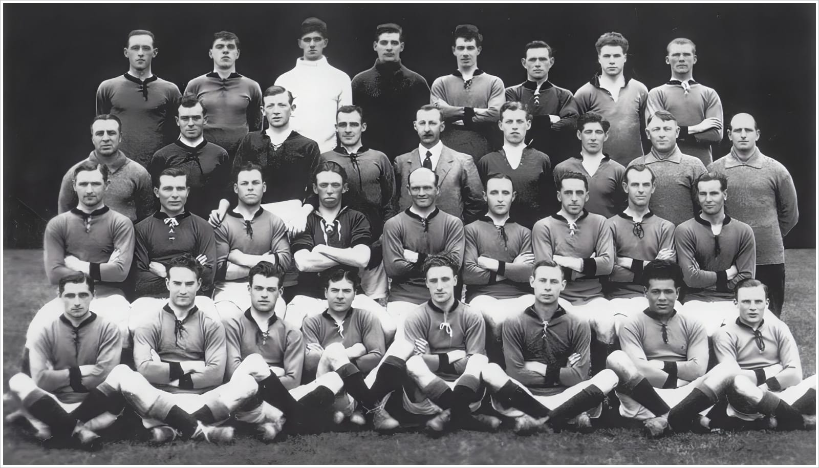 Front row: J. Kirkpatrick, J. Fowler, J. Walker, T. Gallogley, F. Richardson, R. R. Jack, J. Leslie, A. Wilson