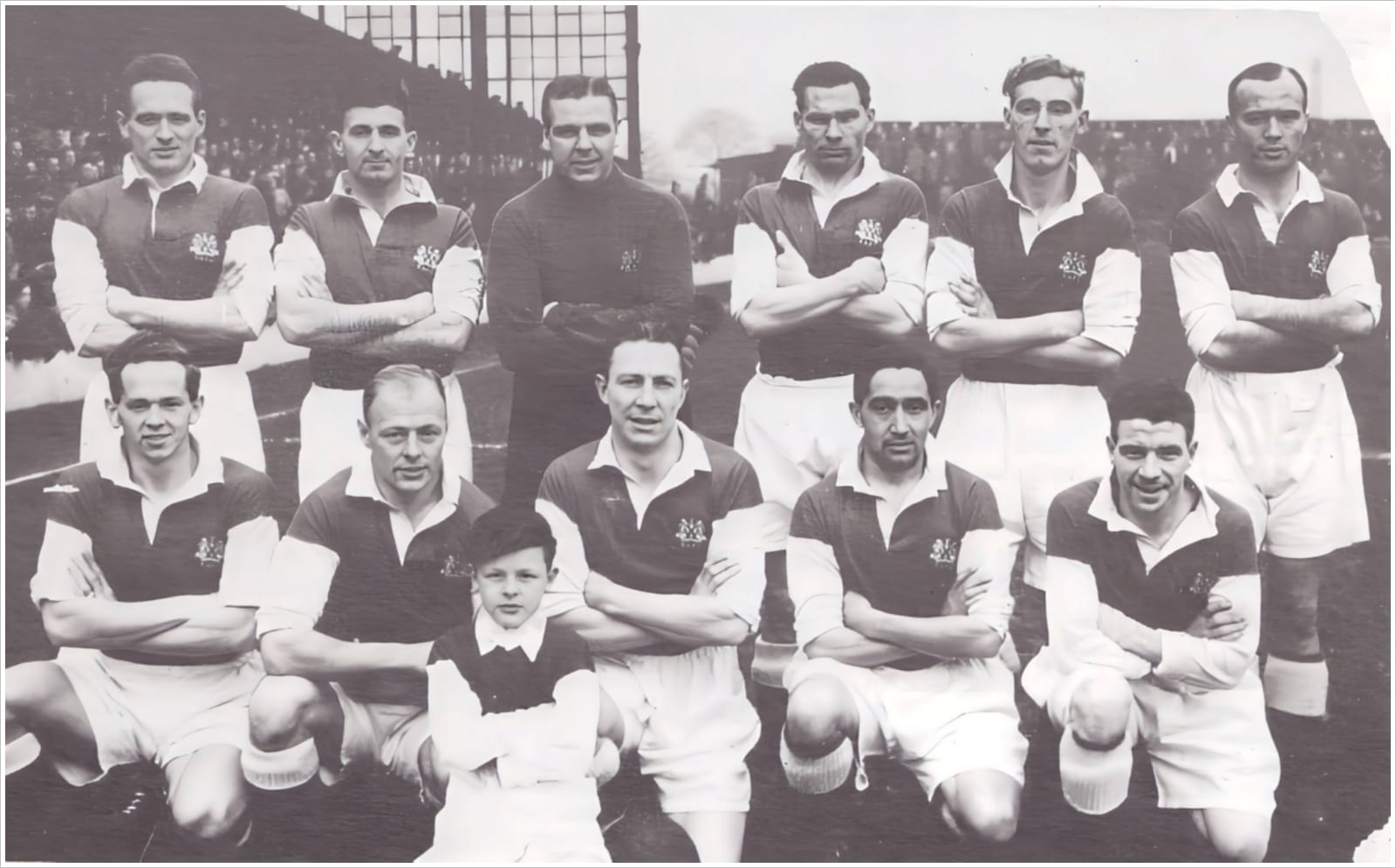 Front row: Bill Strauss, Sam McCrory, Alex Govan, Gordon Astall, George Willis, Maurice Tadman, Eric Davis, Harold Dobbie, Peter Anderson, Leslie Evans, Arthur Smith