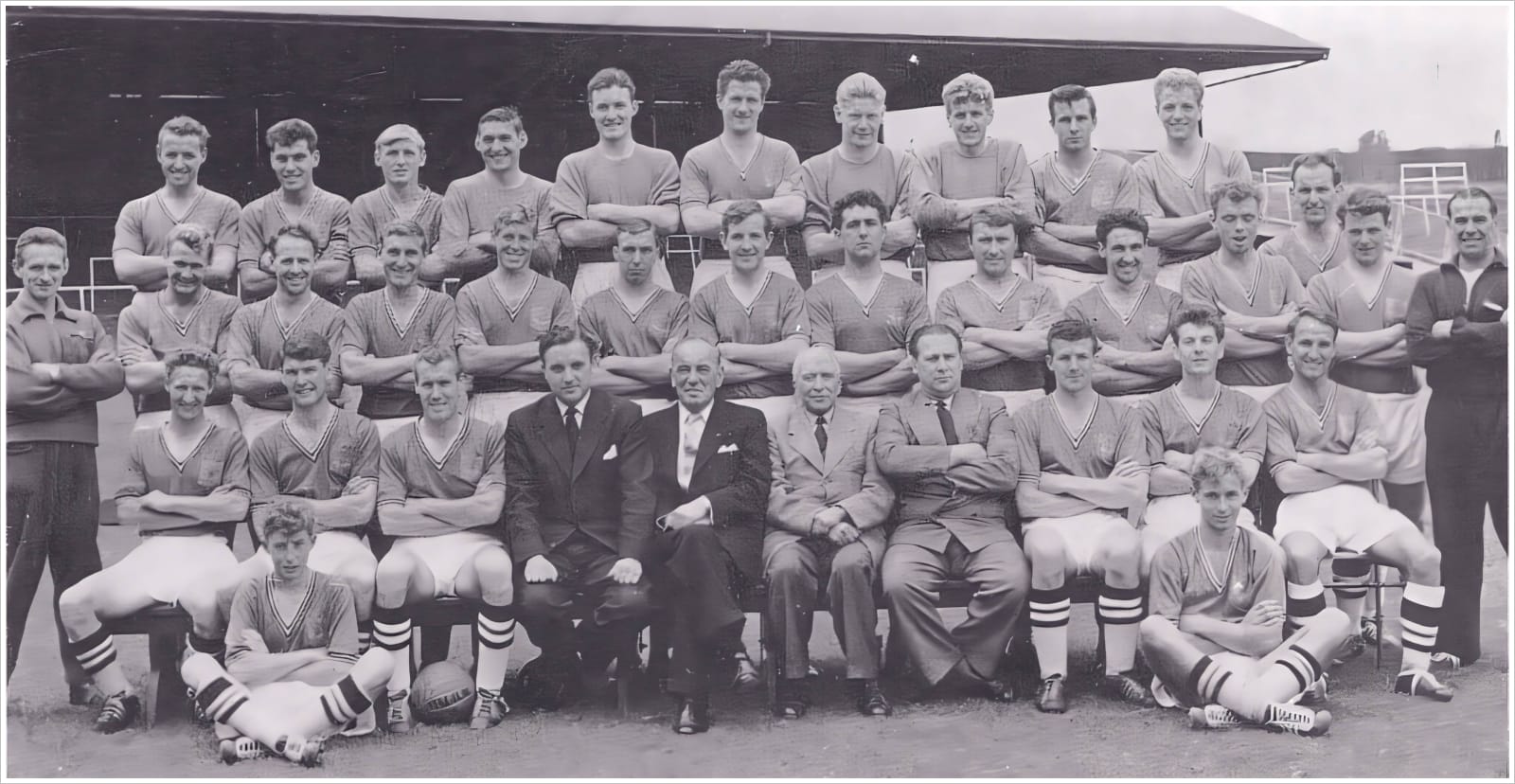 Front row: Jimmy McAnearney, George Kirby, Johnny Newman, Peter Skinnard (Director), Ron Blindell (Chairman), Lt-Col Rochfort Hunt (Director), Jimmy Hall (Director), Johnny S. Williams, Terry Dann, Peter Anderson