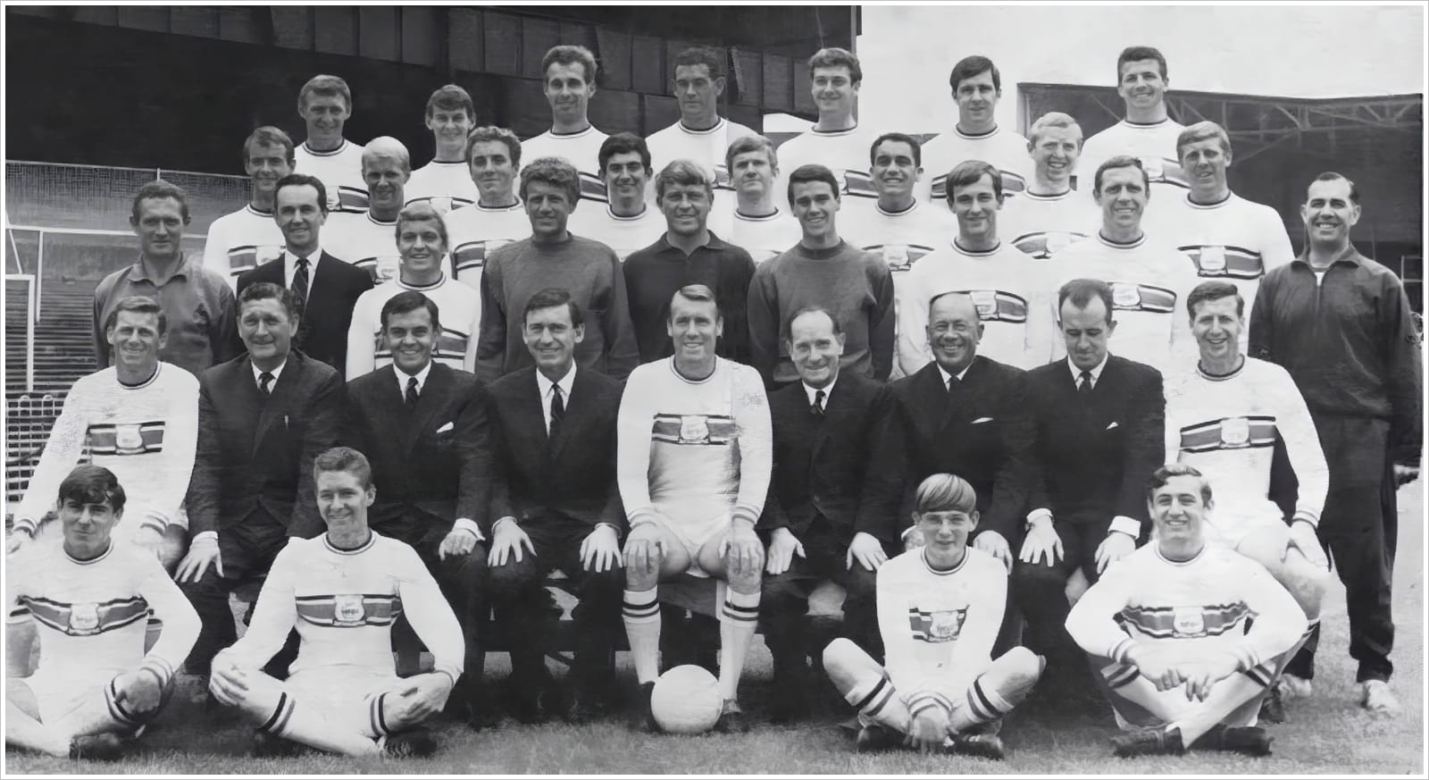 Front Row: Tony Book, Doug Fletcher (Director), Robert Daniel (Director), Derek Ufton (Manager), Johnny Newman (Captain), Stafford Williams (Chairman), Clifford Crookes (Director), Brian Williams (Director), Doug Baird