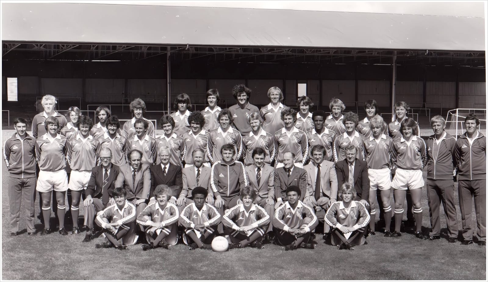 Middle row: Terry Long (Coach), Fred Binney, Brian McNeill, Brian Bason, Colin Randell, Chris Harrison, Steve Perrin, Forbes Phillipson-Masters, George Foster, Colin Clarke, Tyrone James, Mark Graves, Steve McCormick, Leigh Cooper, Jack Edwards (Coach), Micky Hill (Reserve Team Manager)
