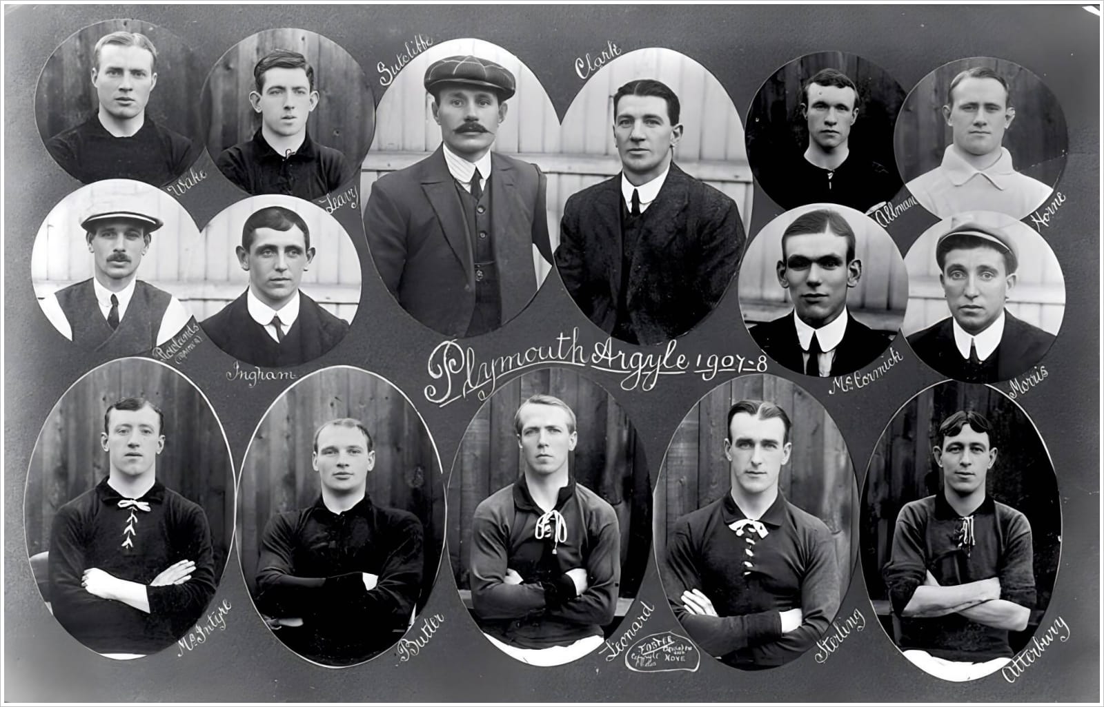 Back row: W. Cleminson, G. Rowlands, J. Pethick, F. Black, J. Sutcliffe, C. Clark, W. Horne, J. McCormick, J. Cudlipp, G. Vivien
