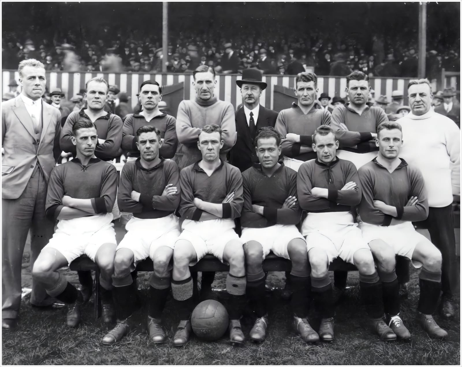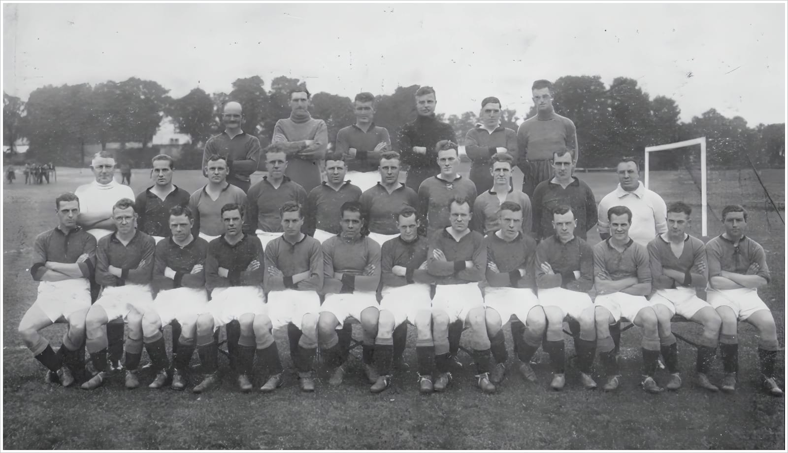 Front row: A. Matthews, P. Richards, J. Vidler, F. Forbes, R. Bowden, J. Leslie, S. Black, N. Mackay, F. Sloan, J. Healy, B. Fellowes, R. Channon